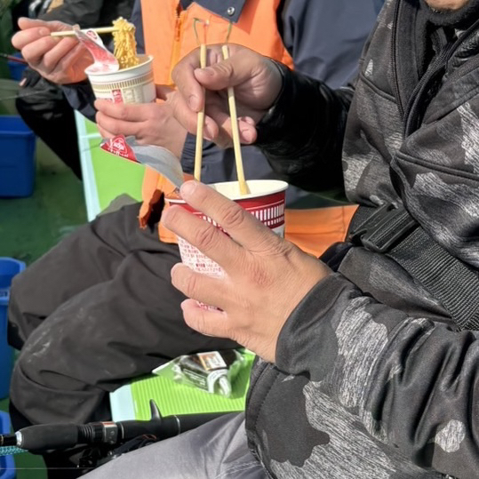 取り込んでエラを切ってベテランのフリをしてると、釣れてない隣の方に仕掛けを聞かれる。